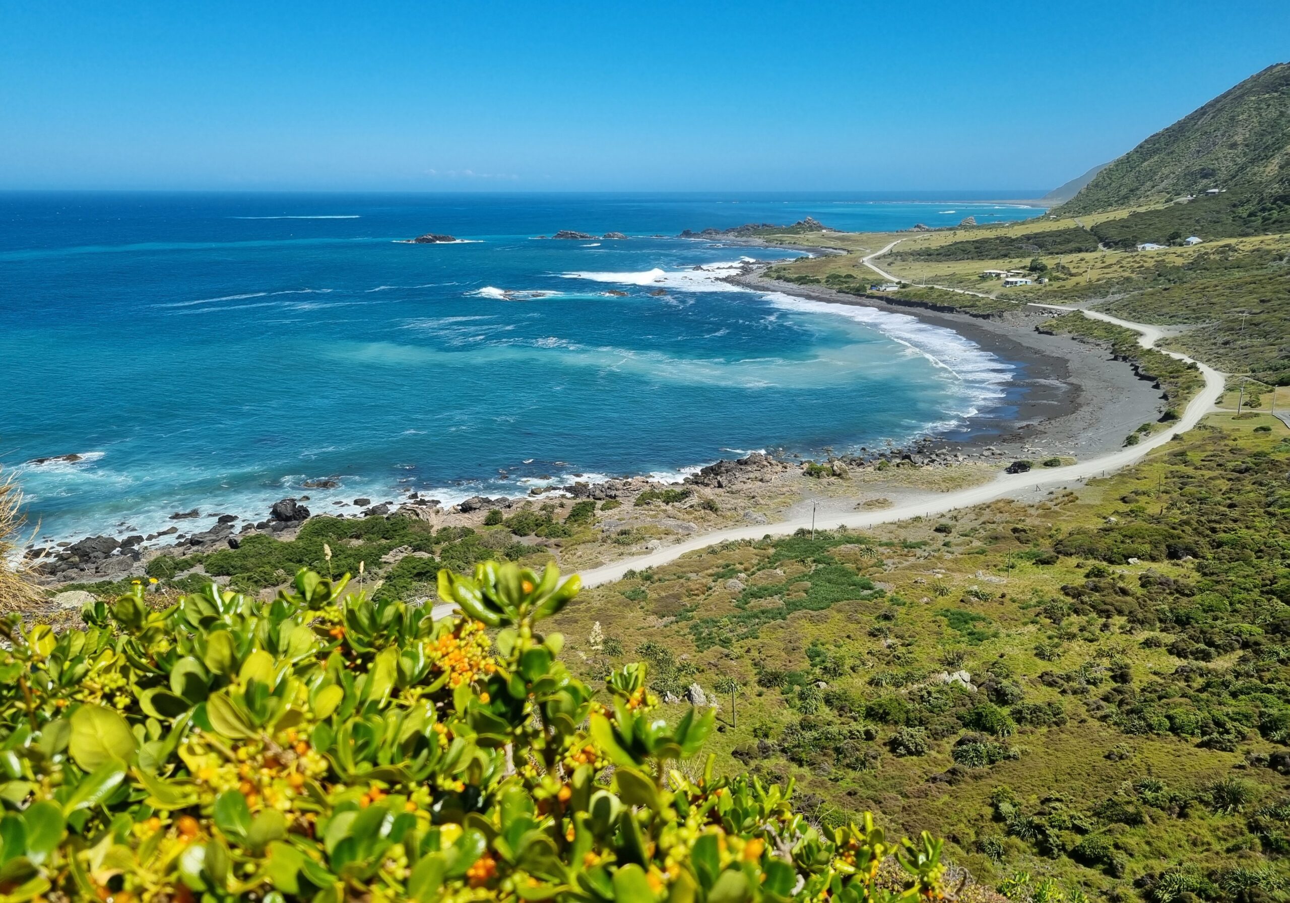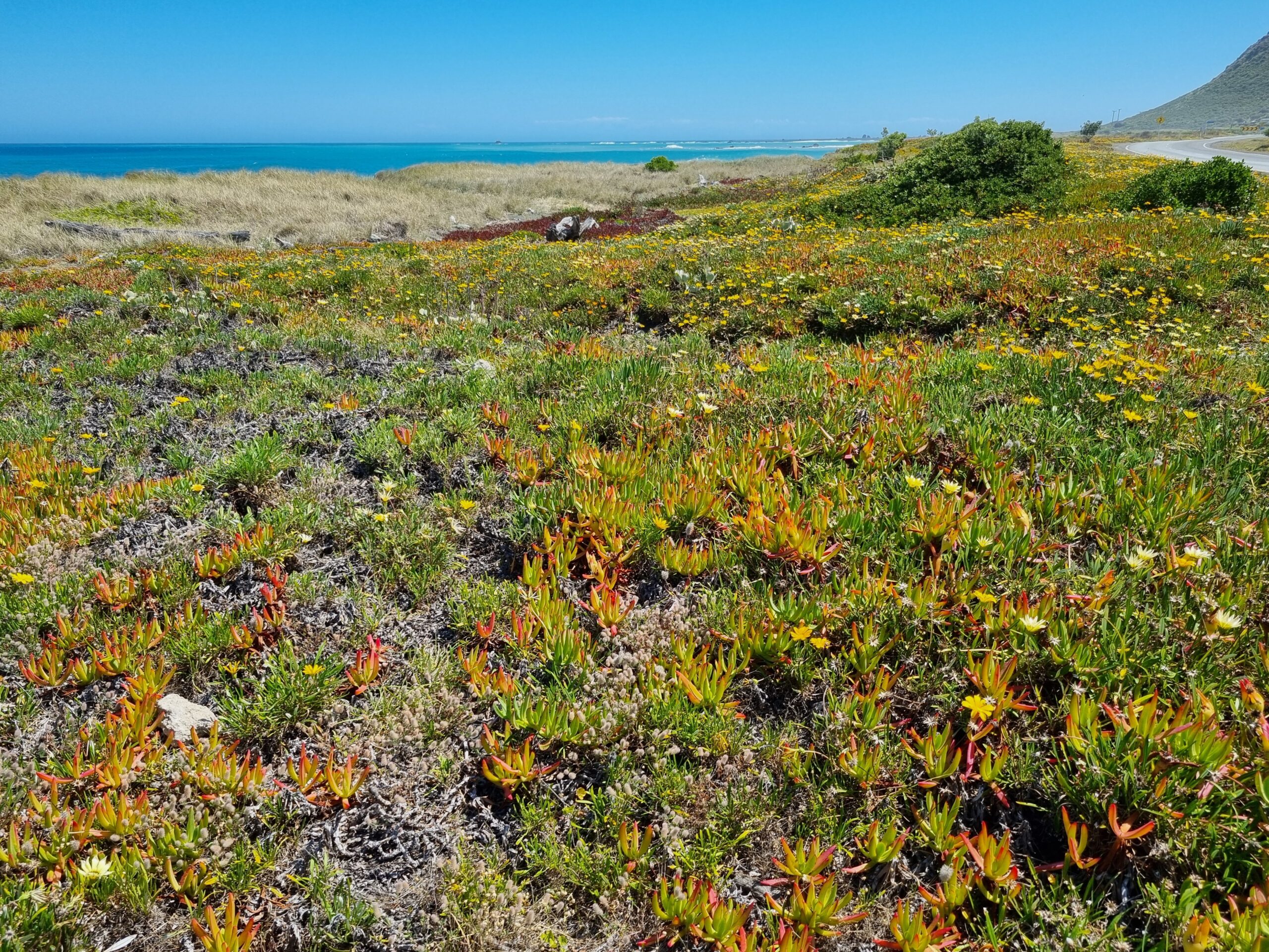 Die langgezogene Bay eröffnete immer wieder schöne Ausblicke aufs Meer oder auf prächtige Blumenfelder. Aus der Ferne wirkte die Landschaft dann wie bunt gemalt.