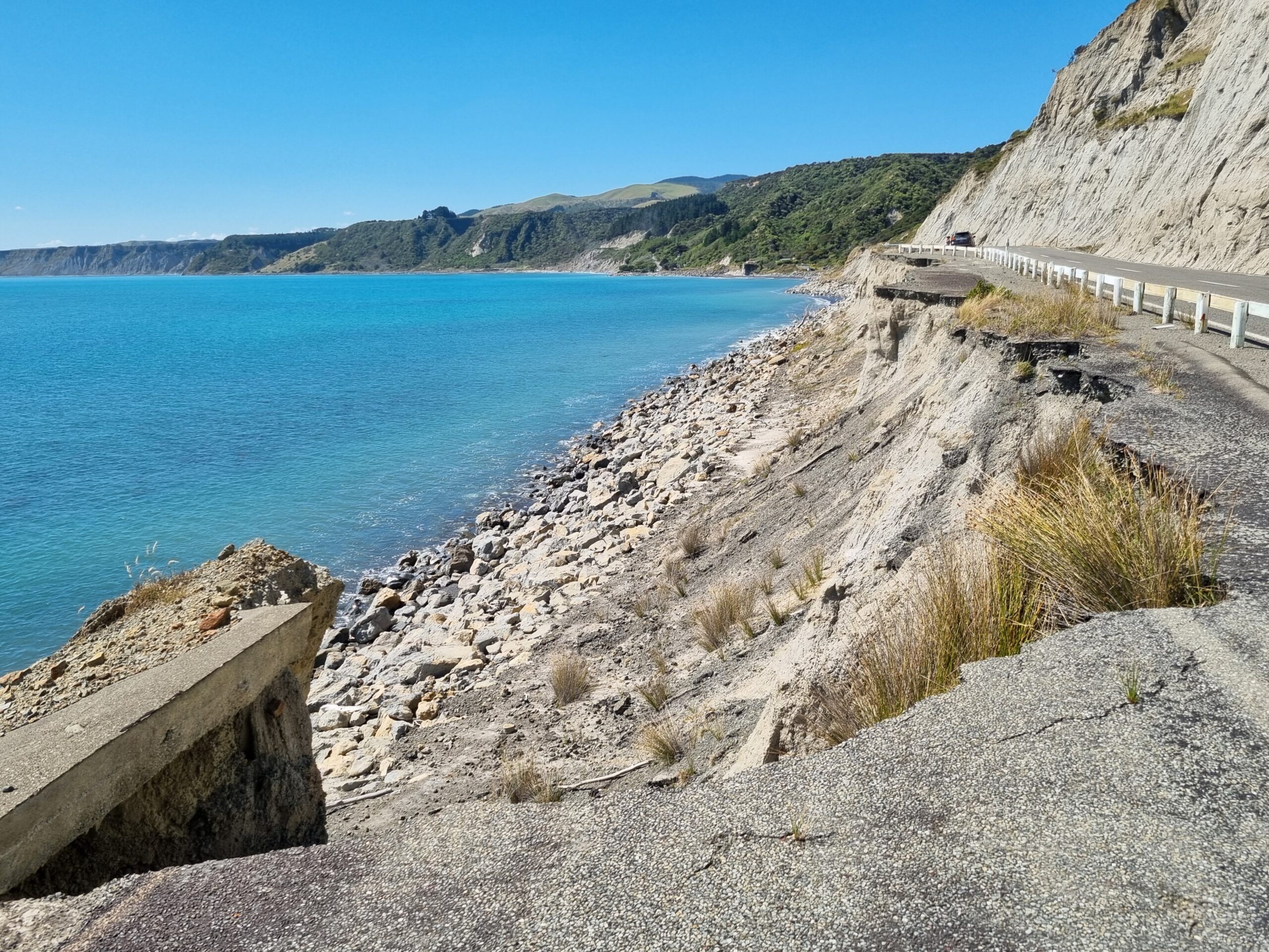 Bei unserem Besuch wirkte das Meer vergleichsweise ruhig. Das Wetter war stabil. Doch es kann hier auch ganz anders aussehen. Davon zeugt unter anderem dieser Teil der ehemaligen Strasse, welcher unterspühlt wurde und wegbrach.