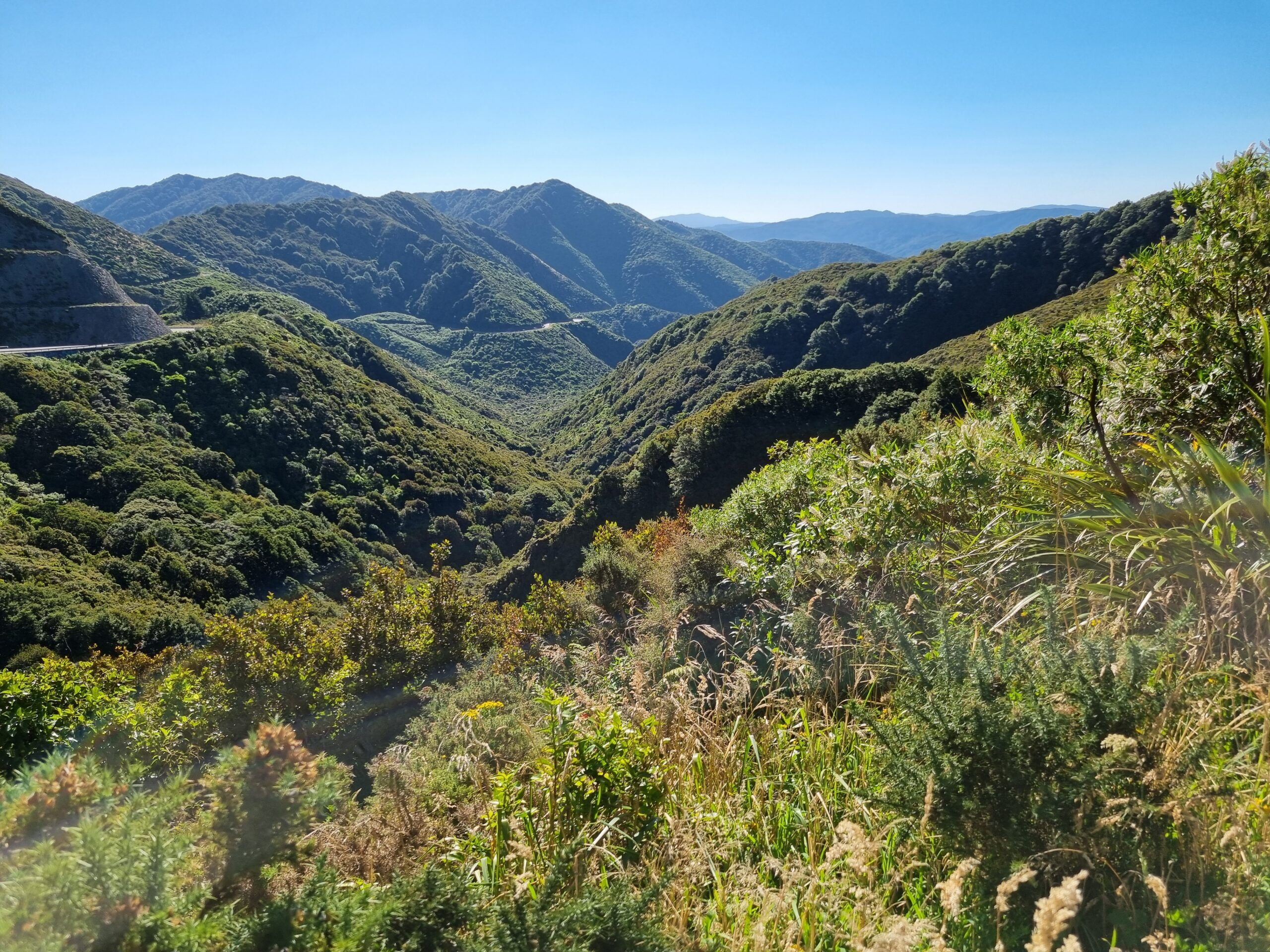 Wir hatten an einen Fehler geglaubt, als uns das Navigationsgerät für die verbleibenden 50 Kilometer bis nach Wellington über eine Stunde Fahrzeit prognostizierte. Doch das Gerät sollte Recht behalten. Unser Weg führte über die landschaftlich sehr reizvolle, aber auch sehr steile und äussert kurvenreiche Remutaka Hill Road, der einzigen Verbindung aus der Region Wairarapa, aus welcher wir kamen, nach Wellington (hier im Bild der bedeutend weniger steile zweite Teil der Strecke nach der Passhöhe). Wir hatten Wetterglück. Es kann hier auch ganz anders sein mit Starkregen, heftigen Winden und im Winter Schnee und Eis. Dann wird die Strecke wirklich anspruchsvoll.