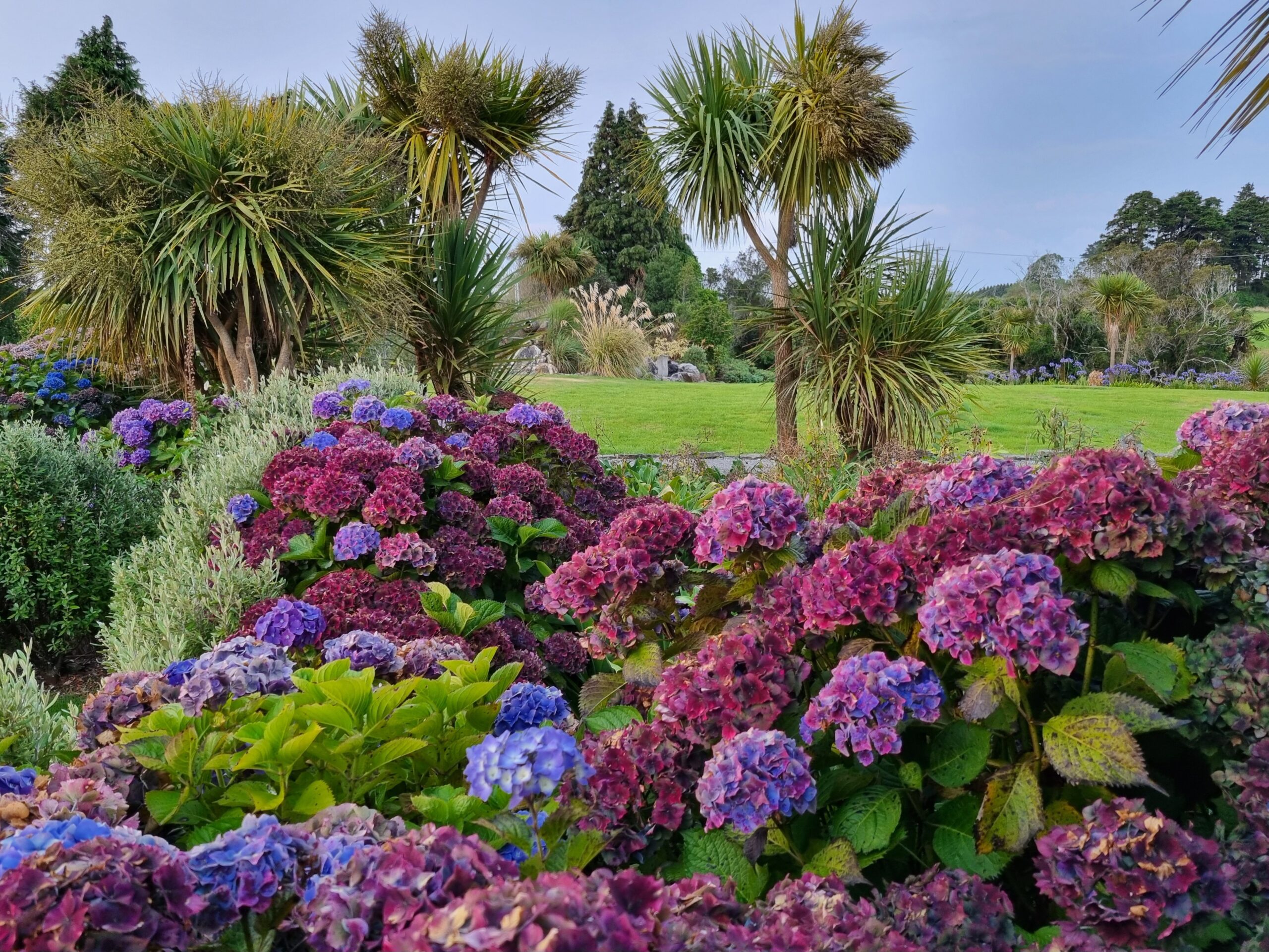 Doch unser Ziel ist der schlummernde Vulkan Taranaki (alias Mount Egmont, wie Captain Cook ihn genannt hat). Wir übernachten in nächster Nähe, in der vor kurzem eröffneten Platinum Logde, welche drei Cabins anbietet, alle mit direktem Blick auf den Taranaki. Der Ehemann betrieb lange Zeit eine Milchfarm und nutzt jetzt die Zeit, um die von ihm wunderschön gestaltete Gartenanlage zu hegen und zu pflegen.