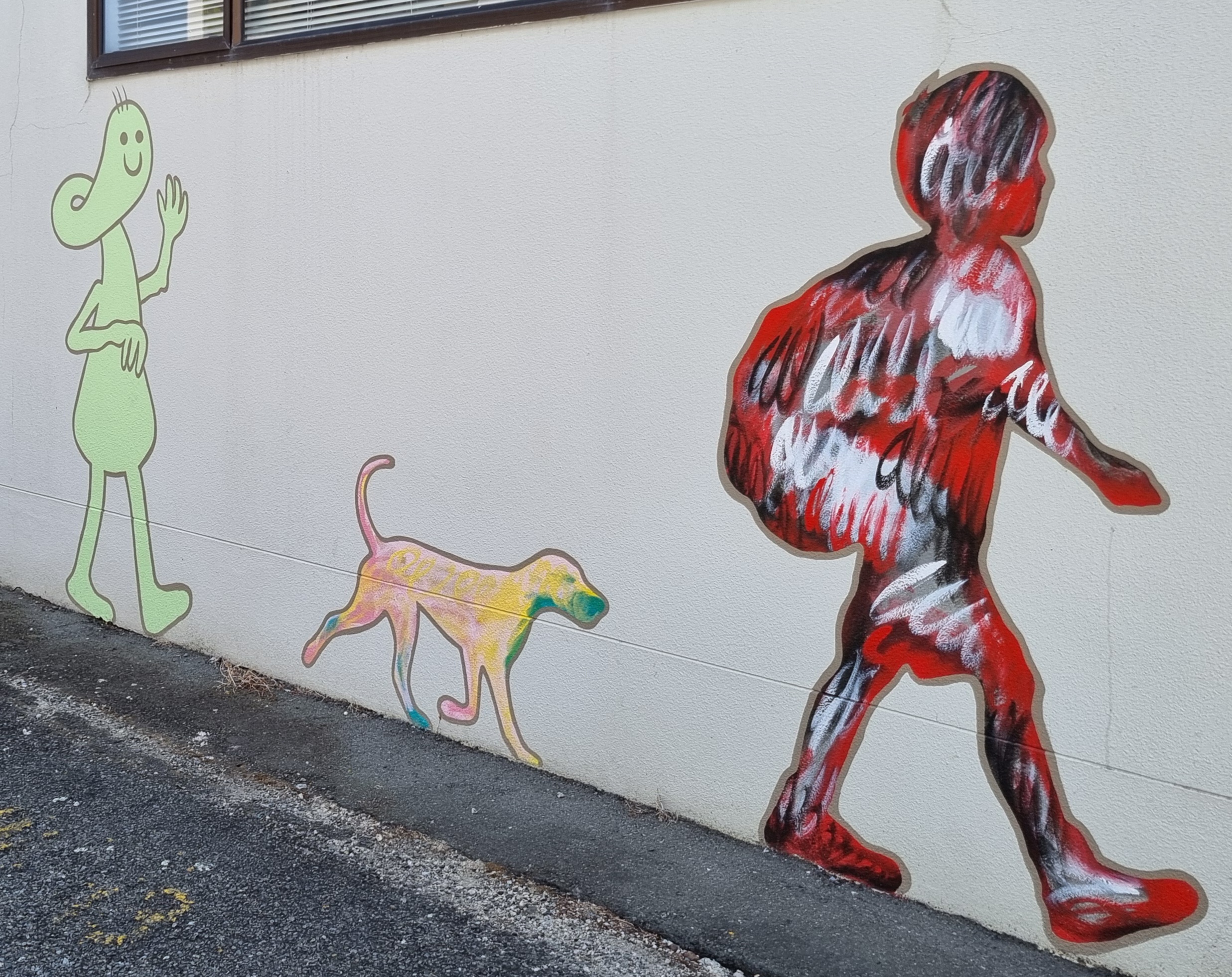 Auf unserem Weg von der Kapiti Coast zum Mount Taranaki passierten wir das Städtchen Whanganui. Dank vergleichsweise niedriger Lebenshaltungskosten ist hier eine blühende Künstlergemeinde entstanden, was sich auch an einigen bemalten Hausfassaden bemerkbar macht.