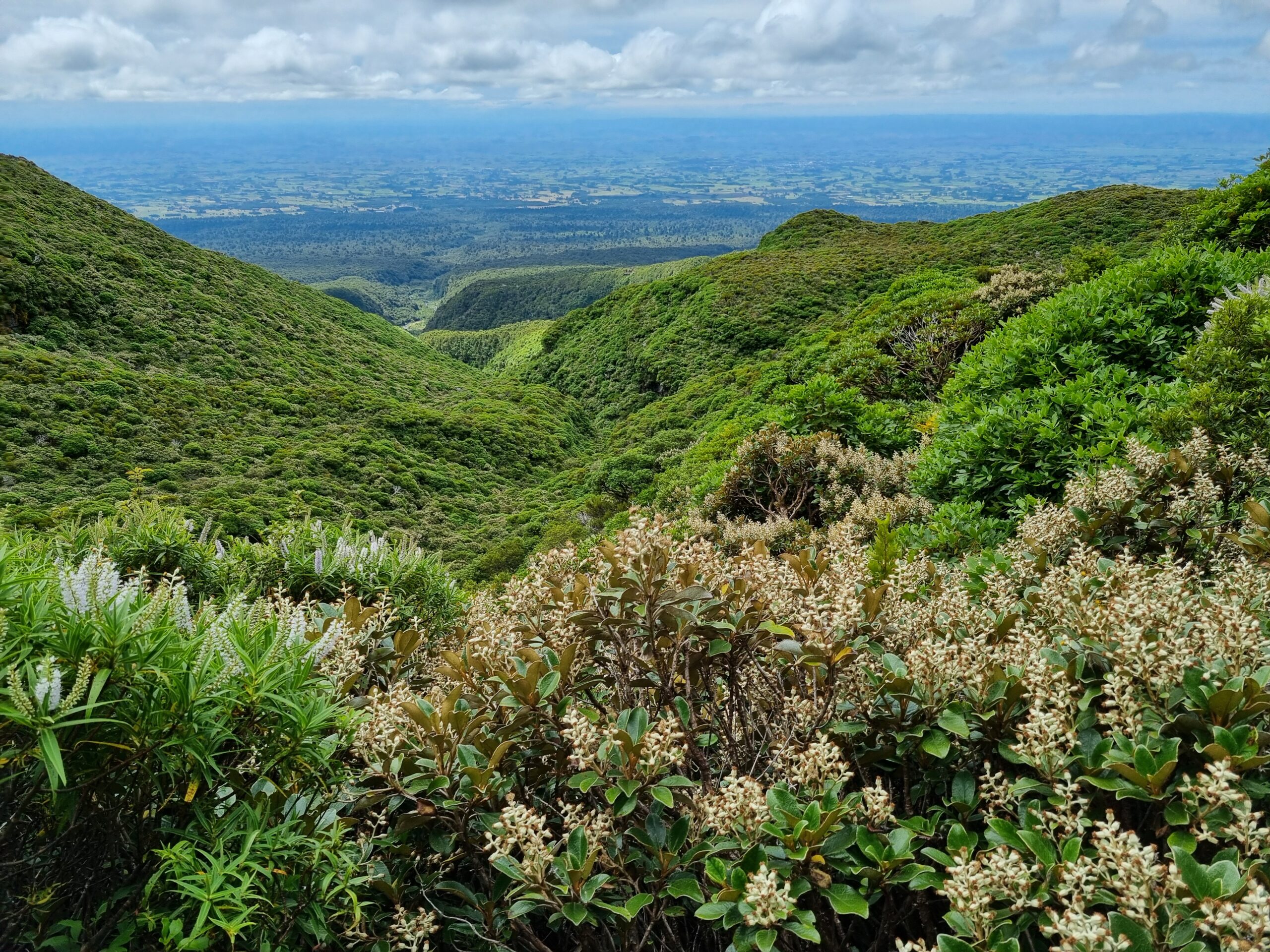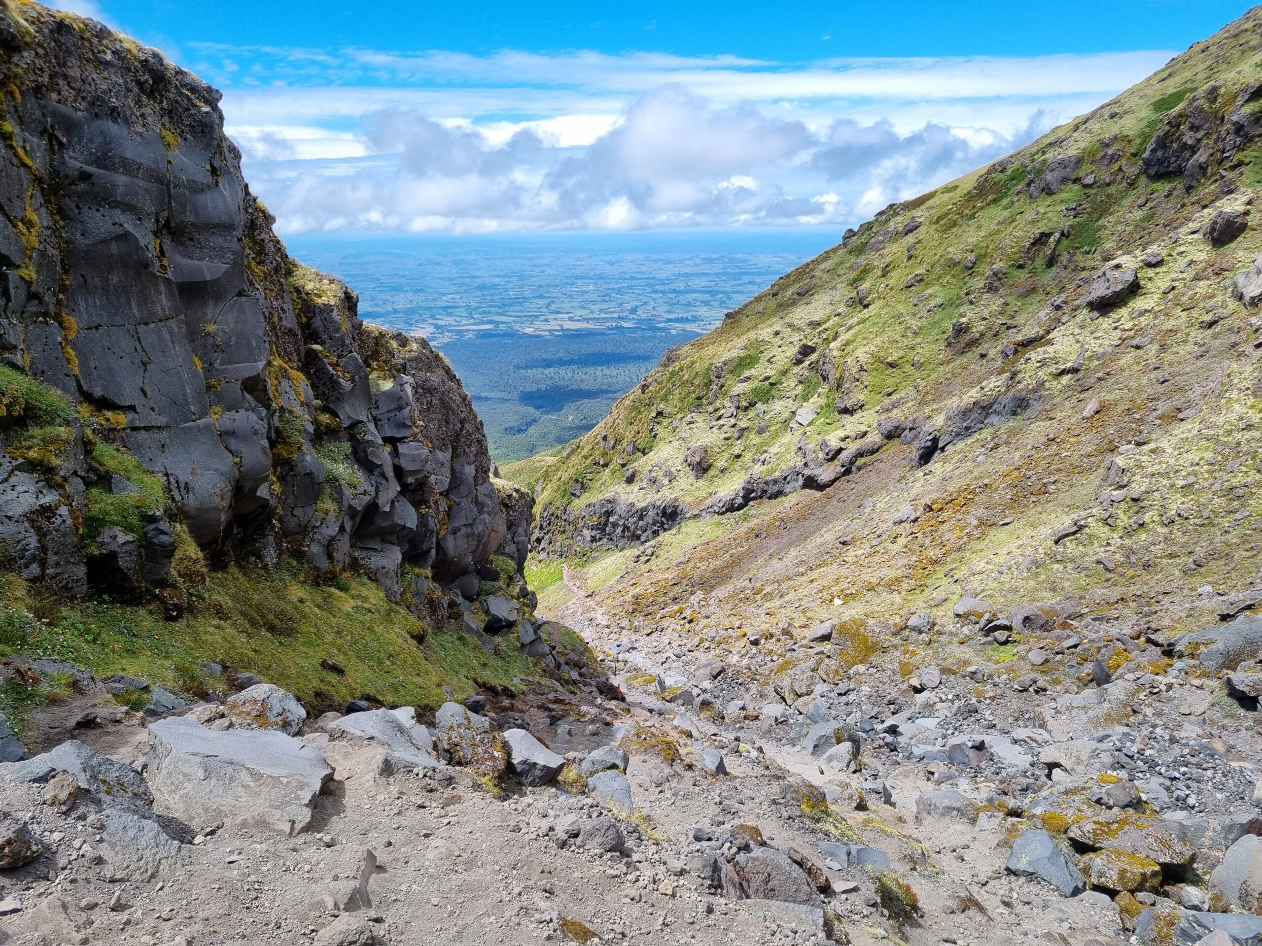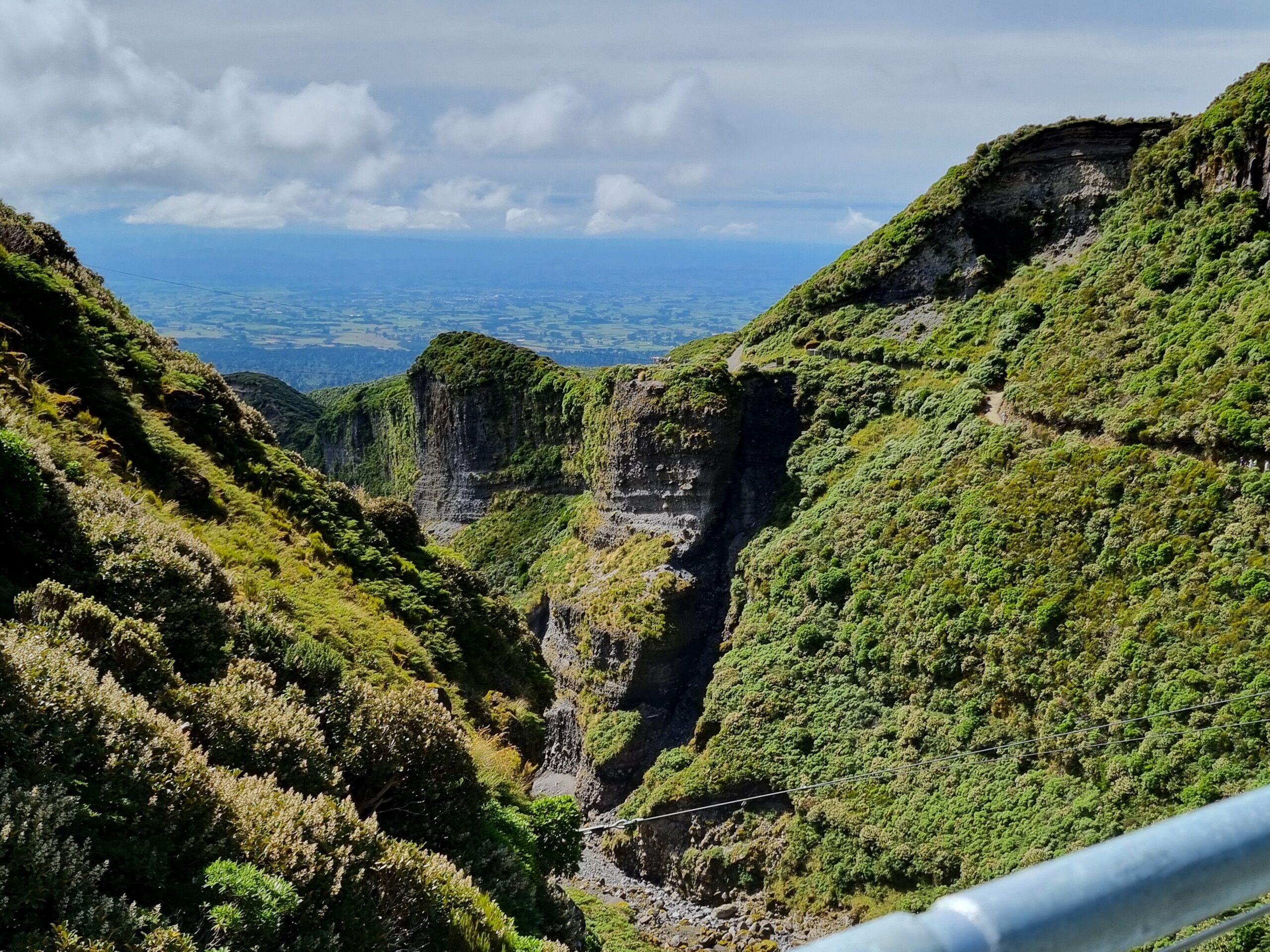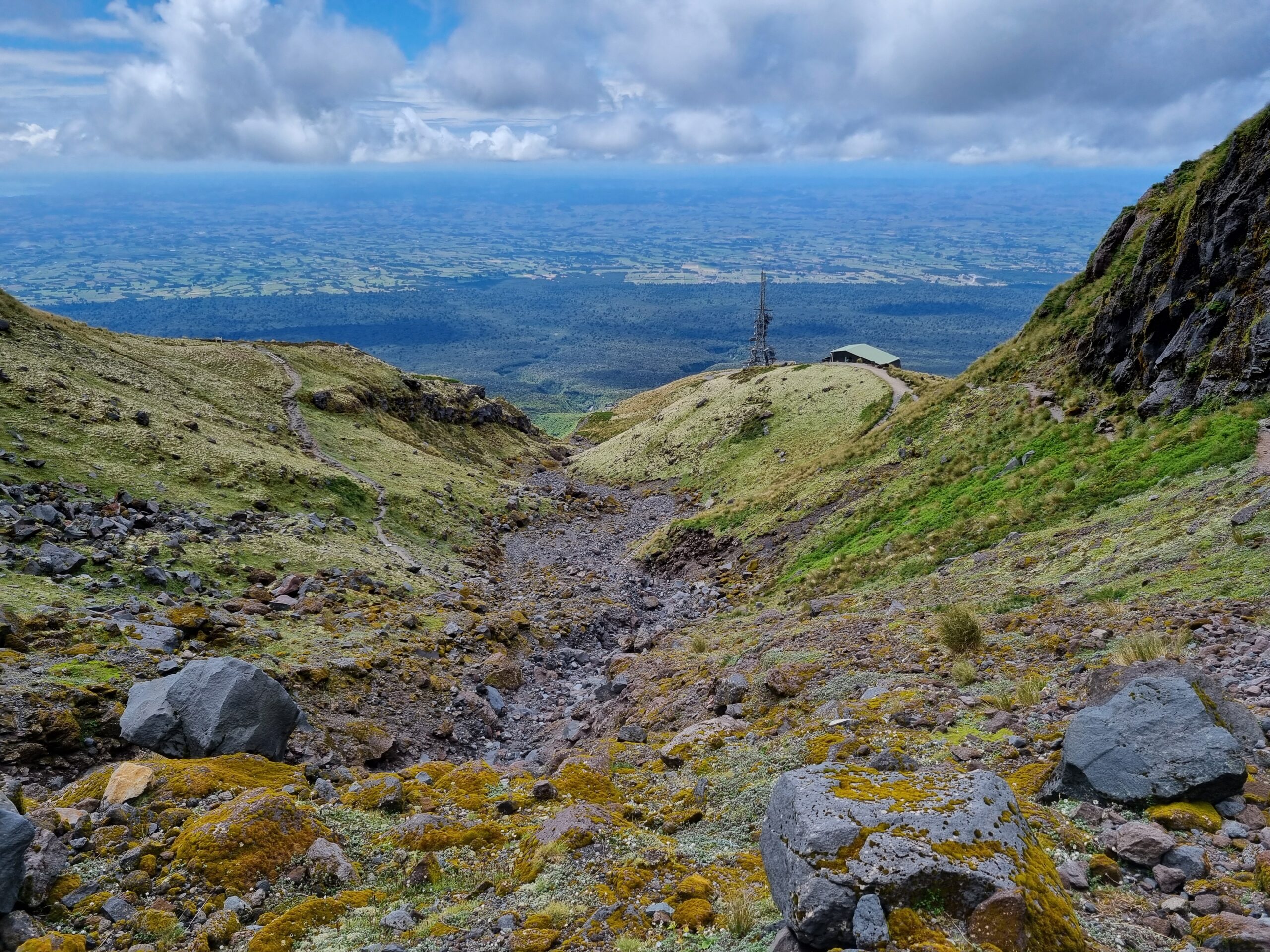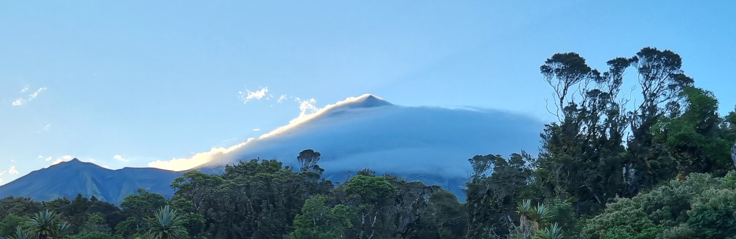 Bonjour me revoila pour découvrir un magnifique paysage directement au pied du mont Taranaki,Et oui vous avez été raisonnable A 1600 mètres d’altitude, Beat décide de faire demi-tour .De la vous avez une vue a coupé le souffle …..Avec les variations de lumière un rêve …..Allez bonne continuation