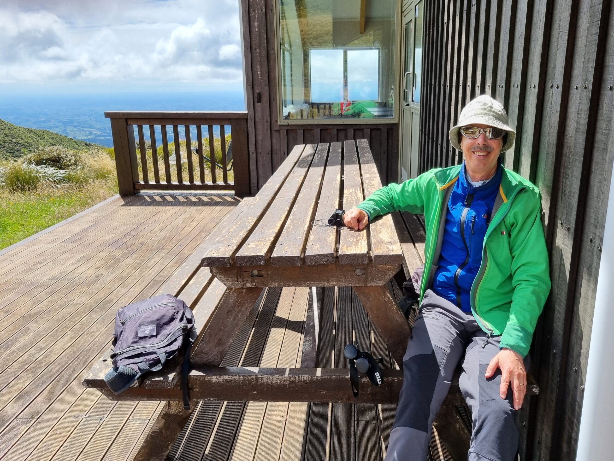 Nach der Tahurangi Lodge beginnt der Weg steil anzusteigen. Jetzt wird es richtig alpin. Auf gut 1600 Metern Höhe entschliesst sich Beat zur Umkehr – eine Regenfront ist angekündigt und die noch verbleibenden rund 900 Höhenmeter in sehr anspruchsvollem Gelände sind um diese Tageszeit sowiese zu viel (es gibt am Taranaki immer wieder tödliche Unfälle). Beim ruppigen, steilen Abstieg wieder runter zur Lodge zeigt sich zudem, dass ein Weitergehen auch für Beats Knie keine gute Idee gewesen wäre. Vorgestern, bei unserer abendlichen Kurzvisite auf dem Ausgangsparkplatz auf rund 1100 Metern, kam uns ein junger Mann entgegen, der zum Gipfel aufgestiegen war und nun beidseits zum Parkplatz runtergestützt werden musste. Seine Knie hatten den Dienst versagt. Rund 1400 Höhenmeter in oft äusserst ruppigem Gelände sind nicht zu unterschätzen.