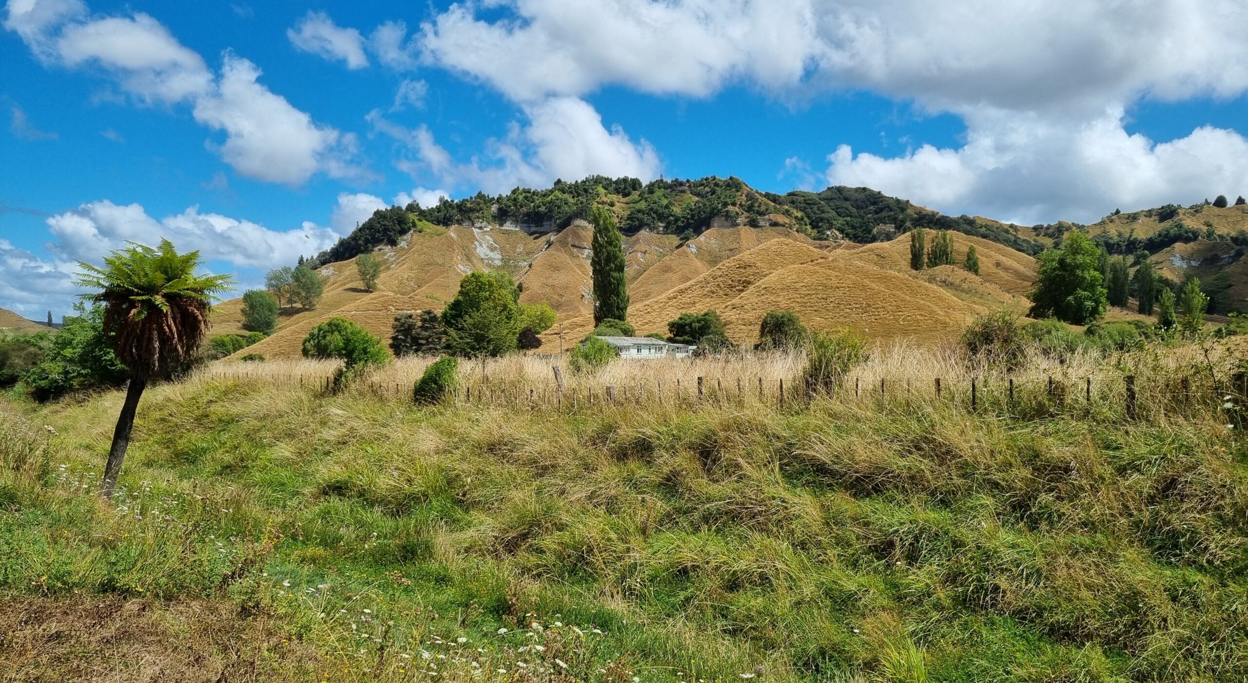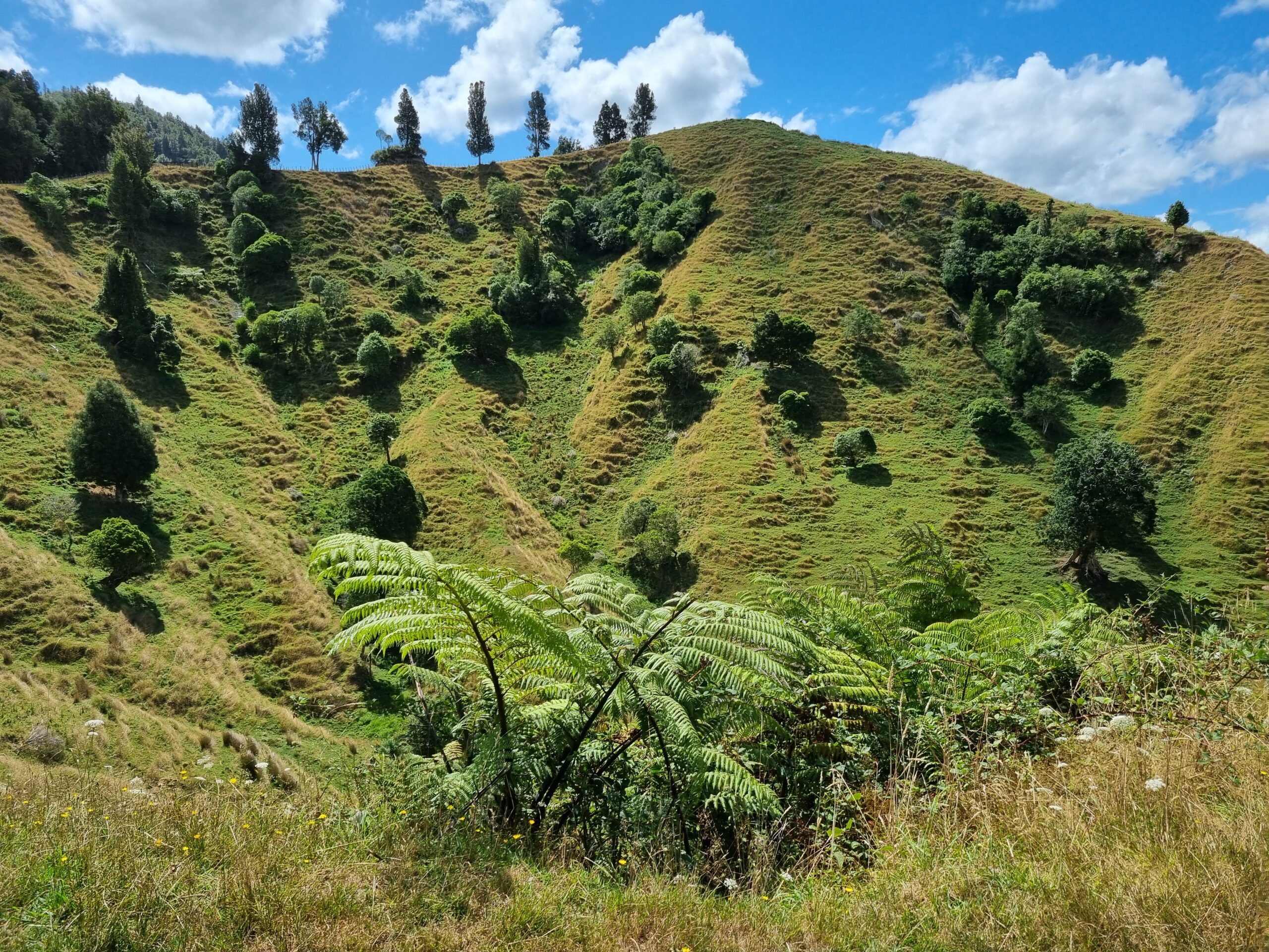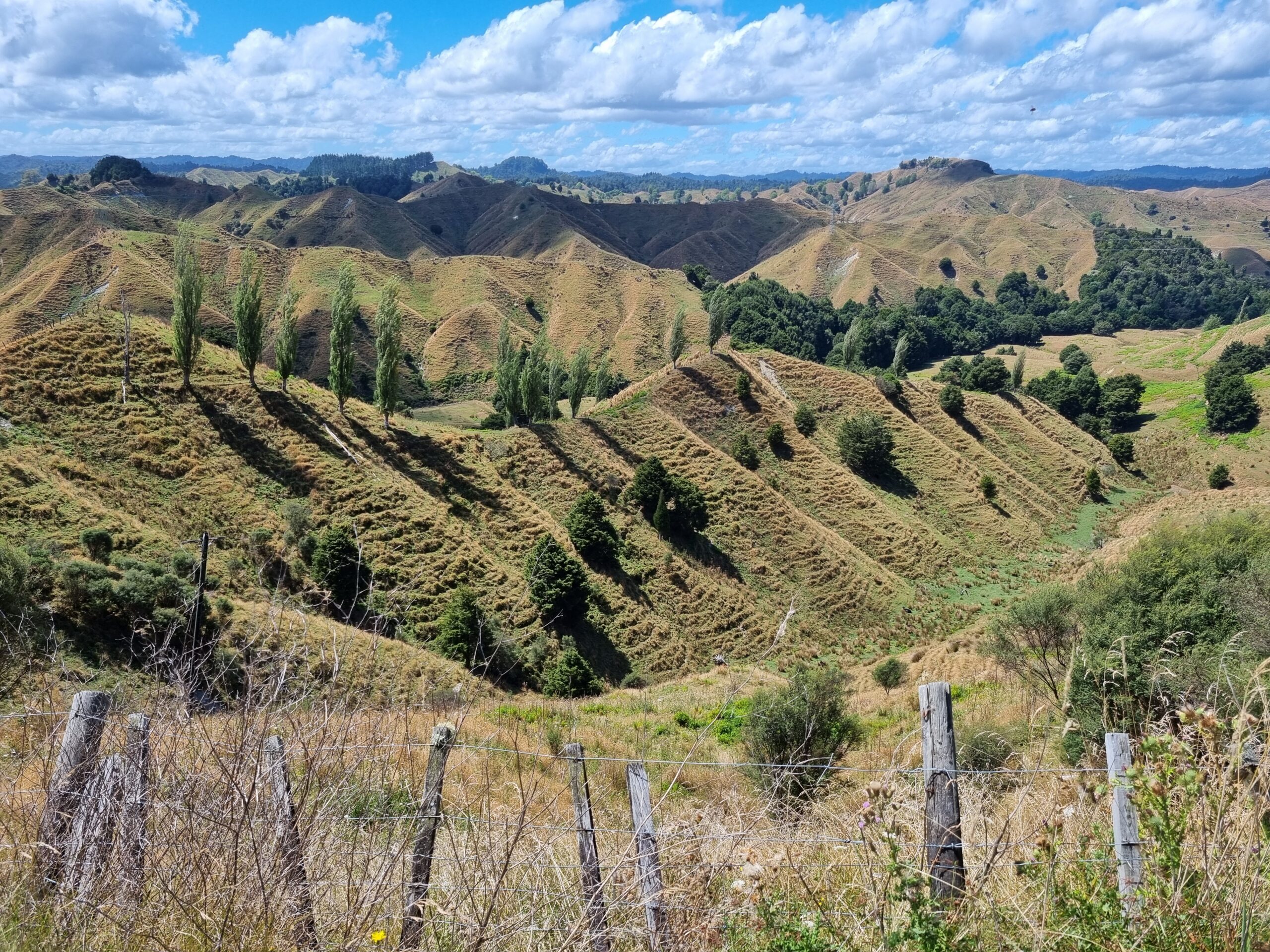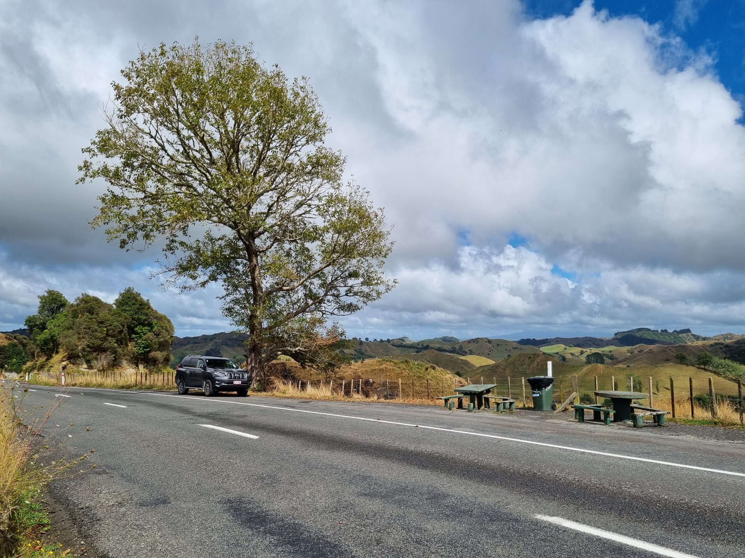 Da das Wetter besser werden sollte, entschieden wir uns für die Fahrt auf der State Highway 43, dem „Forgotten World Highway„, um zu unserem nächsten Ziel, dem Tongariro Nationalpark, zu gelangen. Diese erst seit kurzem durchgehend geteerte Strasse führt auf rund 155 Kilometern durch eine traumhaft schöne, hügelige Landschaft. Wir würden „iconic New Zealand“ sehen, sagte uns unsere Gastgeberin zum Abschied. Nachfolgend einige Impressionen dieses malerischen Teils von Neuseelands Nordinsel.