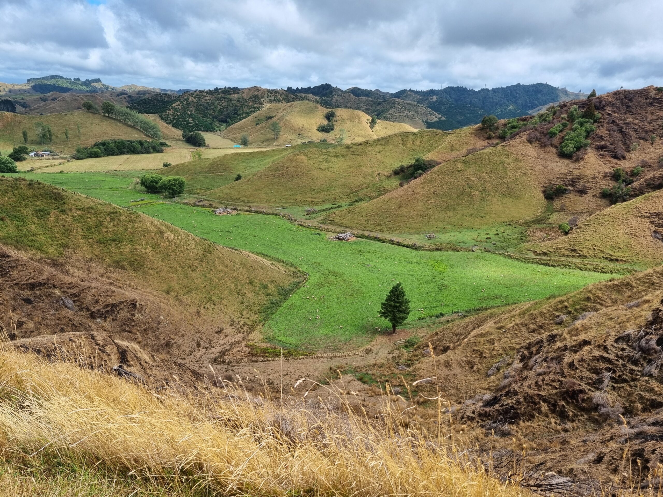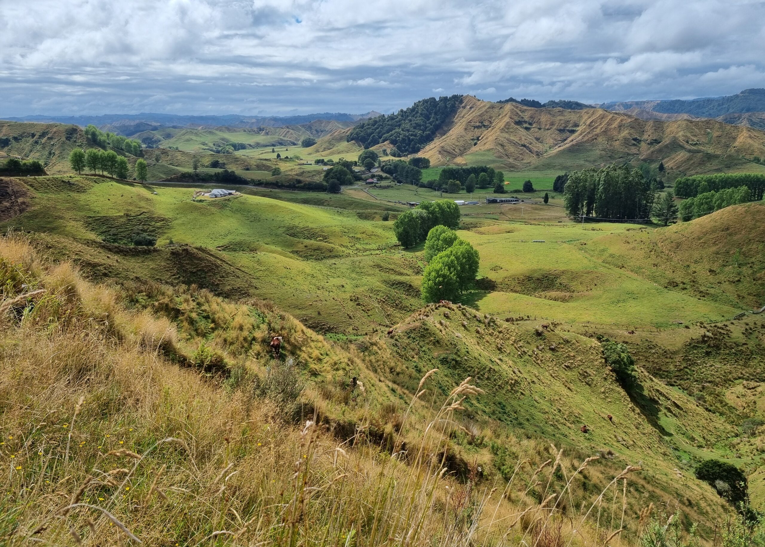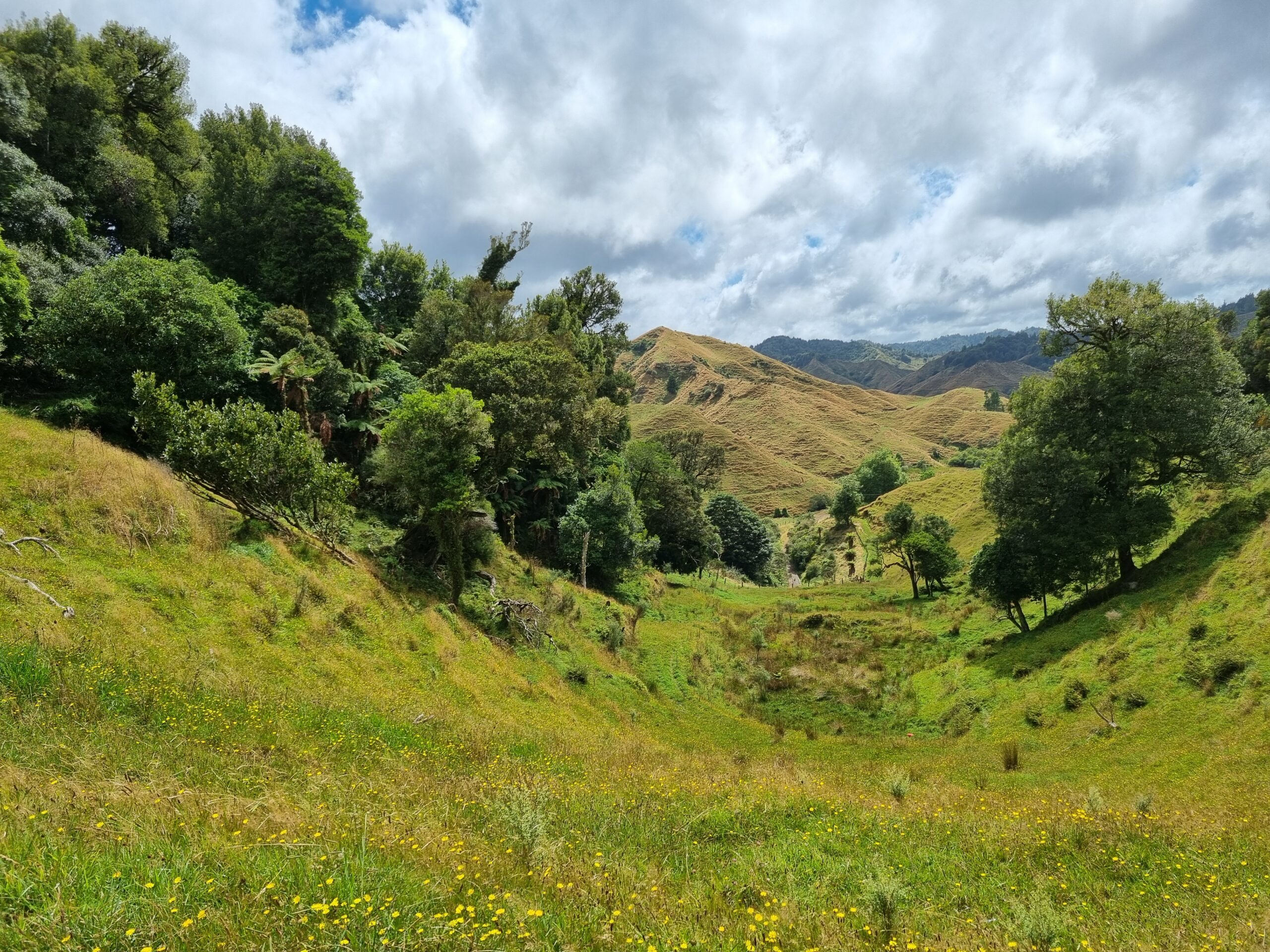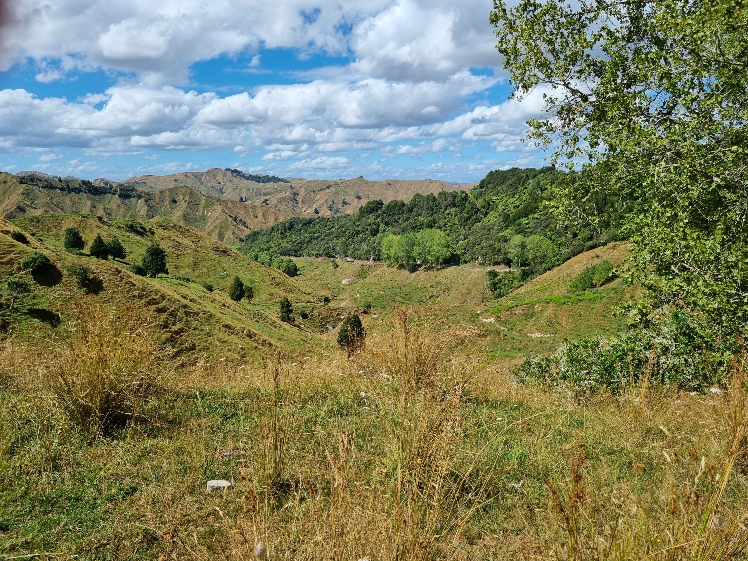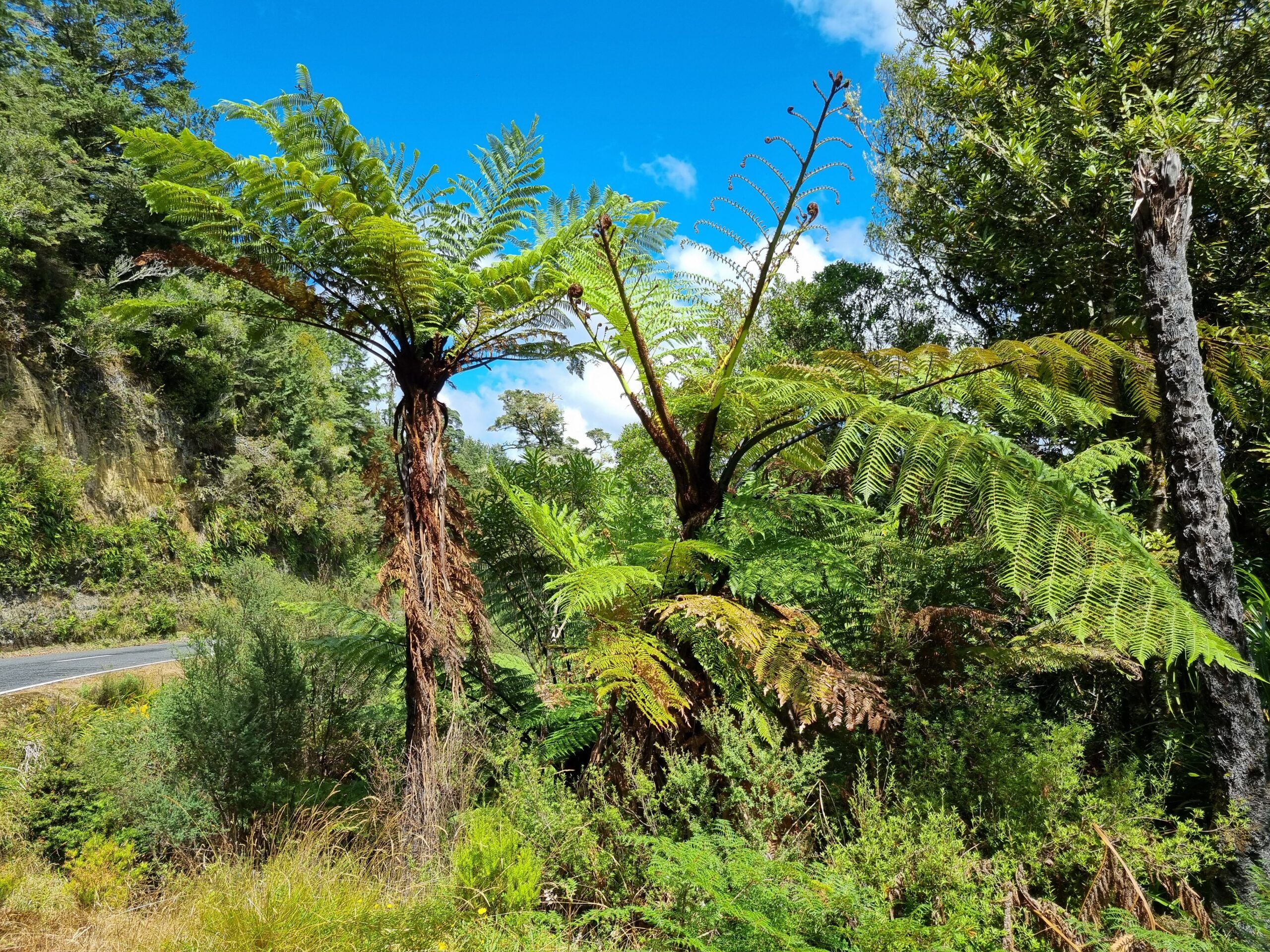 Da das Wetter besser werden sollte, entschieden wir uns für die Fahrt auf der State Highway 43, dem „Forgotten World Highway„, um zu unserem nächsten Ziel, dem Tongariro Nationalpark, zu gelangen. Diese erst seit kurzem durchgehend geteerte Strasse führt auf rund 155 Kilometern durch eine traumhaft schöne, hügelige Landschaft. Wir würden „iconic New Zealand“ sehen, sagte uns unsere Gastgeberin zum Abschied. Nachfolgend einige Impressionen dieses malerischen Teils von Neuseelands Nordinsel.