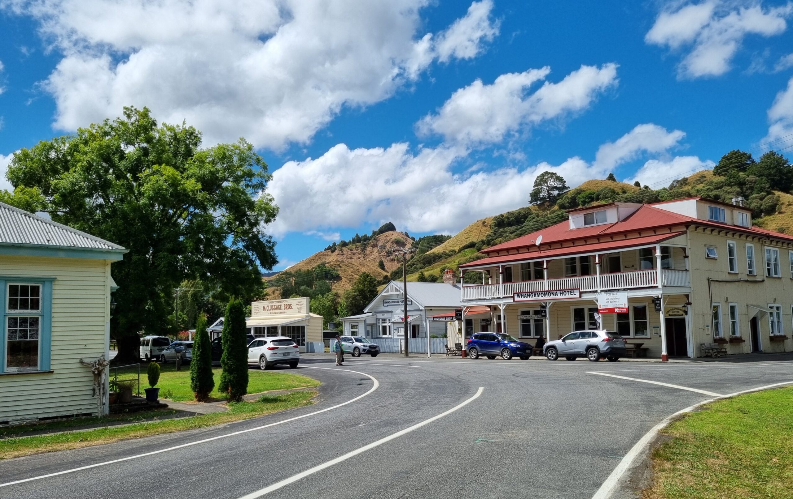 Das Zentrum der Republik, der Ortskern von Whangamomona, wurde im Stil des 19. Jahrhunderts erhalten. Zwei nett aussehende Cabins und ein Campingplatz laden zu längerem Verweilen ein – durchaus mal eine Option für ein paar Tage Erholung. Abends, wenn alle Tagestouristen fort sind, sicherlich ein Ort der Stille  und der Beschaulichkeit.