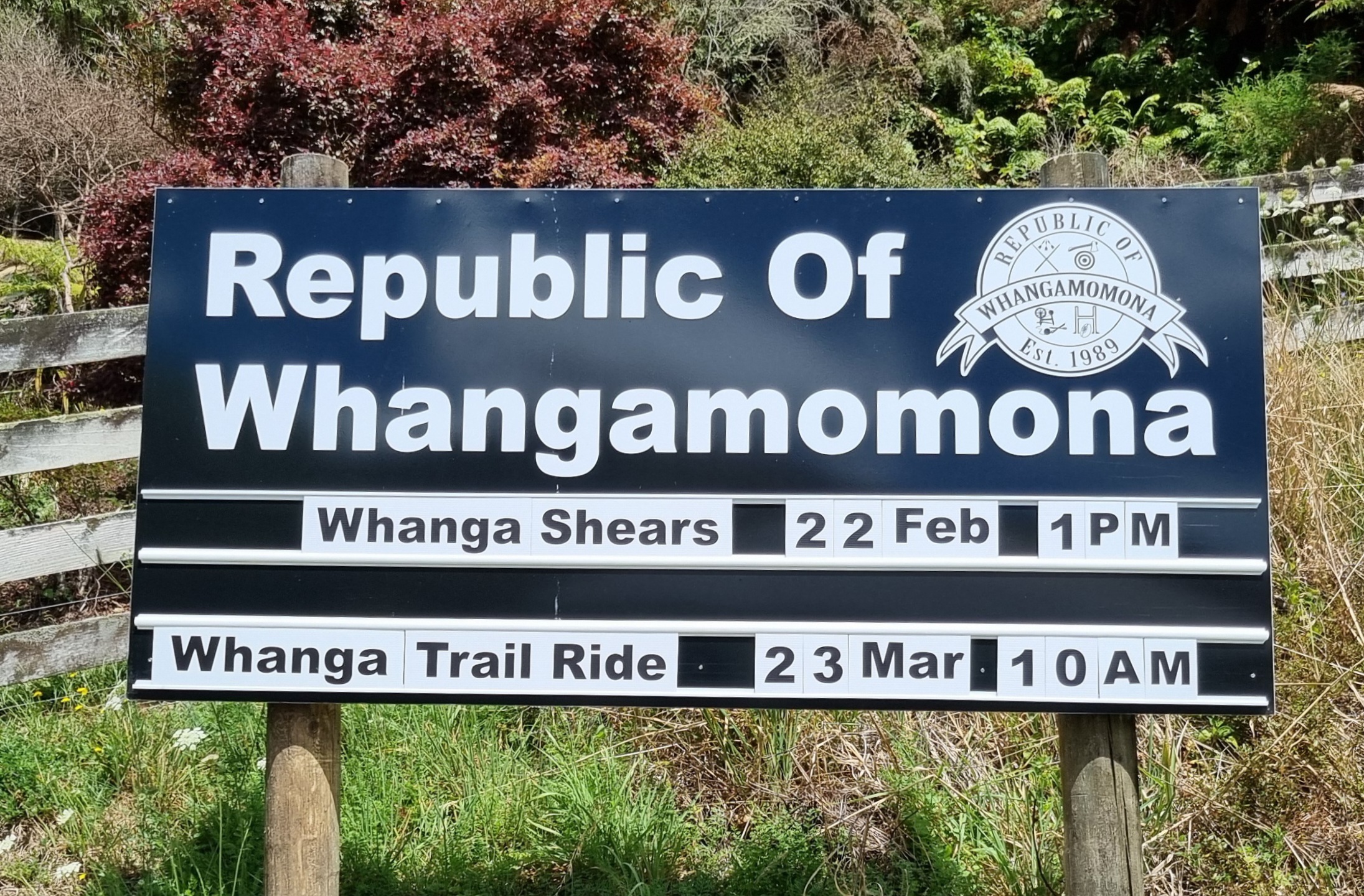 Unterwegs durchquerten wir die unabhängige „Republic of Whangamomona“. Entstanden ist sie im Jahr 1989 aus Protest gegen eine Entscheidung der Regierung im fernen Wellington, welche mit einer Verwaltungsreform die Gemeinde Whangamomona zwei verschiedenen Regionen und damit auch zwei verschiedenen Verwaltungseinheiten zuordnete. Die Verwaltungsgrenze lief quer durch die Gemeinde. Da Interventionen in Wellington nichts brachten, entschieden die Einwohner der Gemeinde am 1. November 1989 einstimmig ihre Unabhängigkeit. Heute erinnert nebst den Schildern an der Strasse, welche die Republiksgrenzen aufzeigen, vor allem der alle zwei Jahre stattfindendene „Wahngamomona Republic Day“, ein Volksfest, an die Republik.