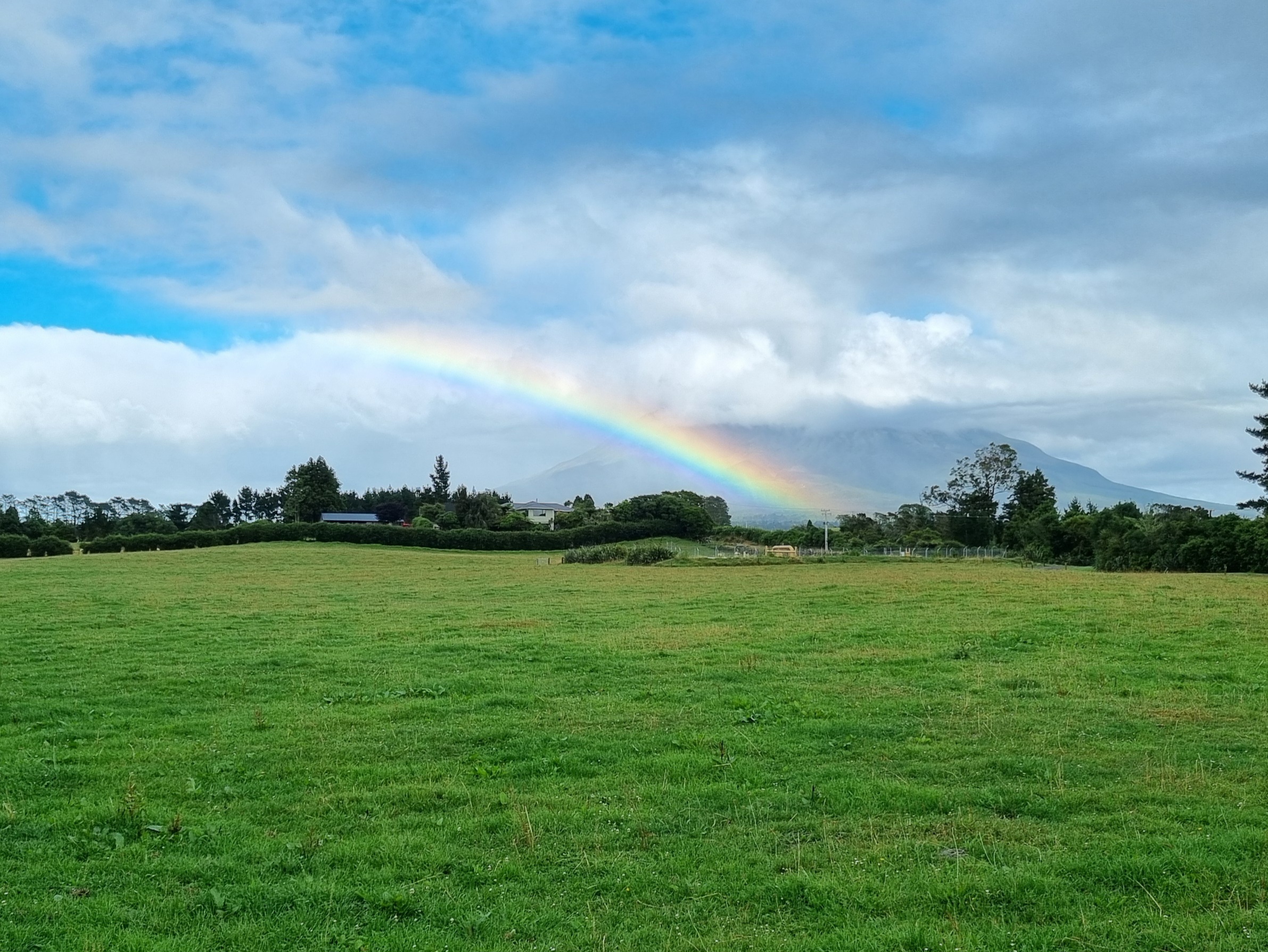 Der Taranaki verabschiedete sich mit einem wunderschönen Regenbogen.