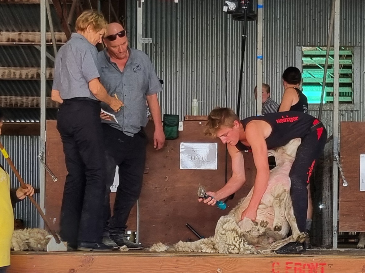 Untenstehend sind einige Schritte der Schafschur festgehalten. Von einem Jurymirglied wird jeder Schritt der Schur kritisch begutachtet. Mit dem Gerät, welches es in der Hand trägt, werden Fehler durch Klicken festgehalten. Nach der Schur werden die Schafe auf Schnittwunden untersucht. Auch das gibt Strafpunkte. All diese Strafpunkte addieren sich zur Zeit, welche für die Schur benötigt wird und ergeben so ein Punktetotal. Wer die niedrigste Punktzahl erreicht, hat den Durchgang gewonnen.