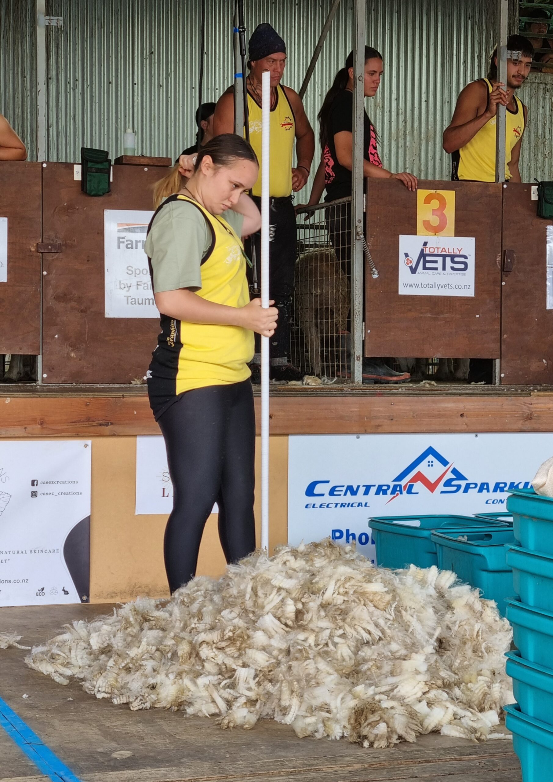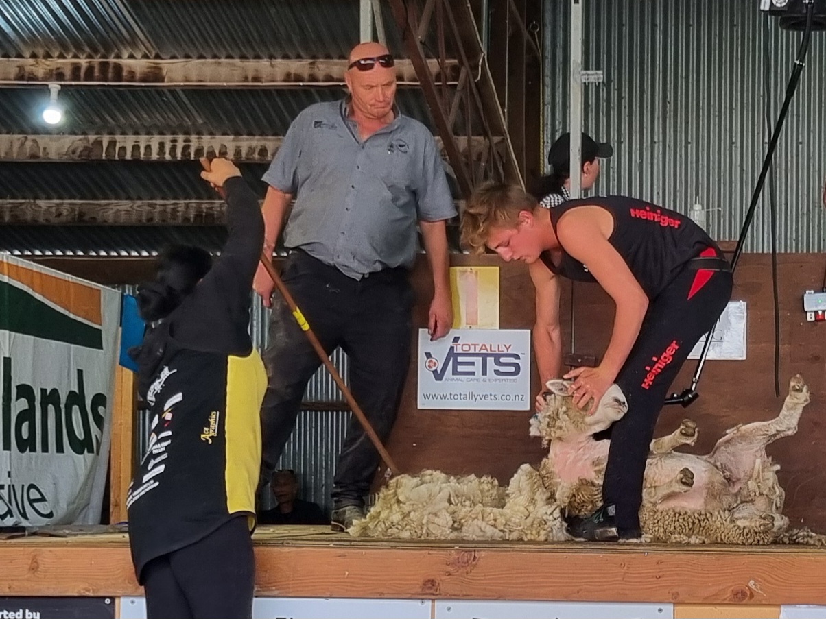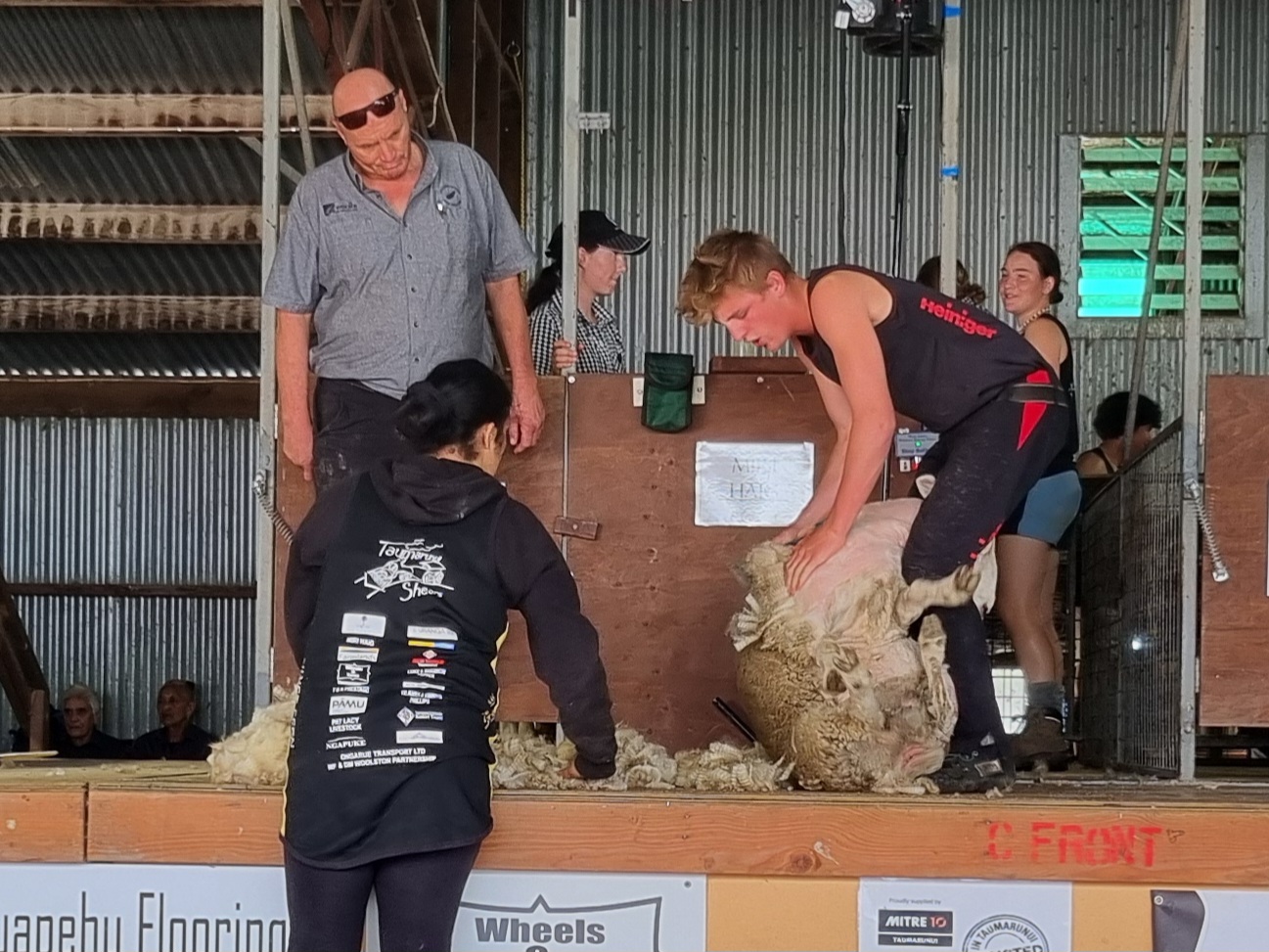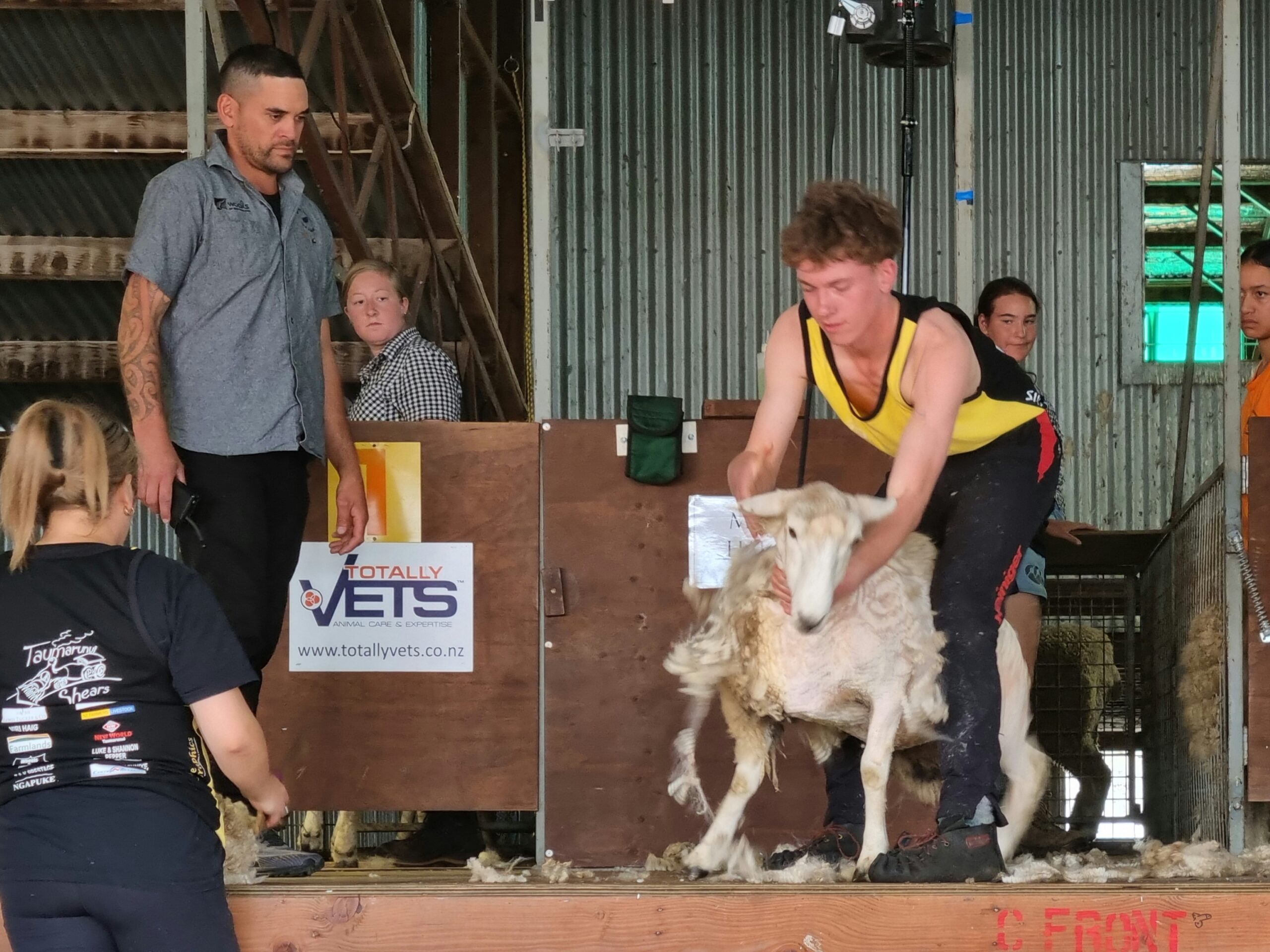 Bea hatte auf der Fahrt zum Tongariro gelesen, dass heute Freitag rund eine Autostunde vom Tongariro Nationalpark entfernt, mitten in der Landwirtschaftszone, ein Schafschurwettbewerb stattfand. Über das Touristenbüro erfuhr sie die genaue Adresse. So fuhren wir heute hin und genossen rund zwei Stunden lang Schafschur live.