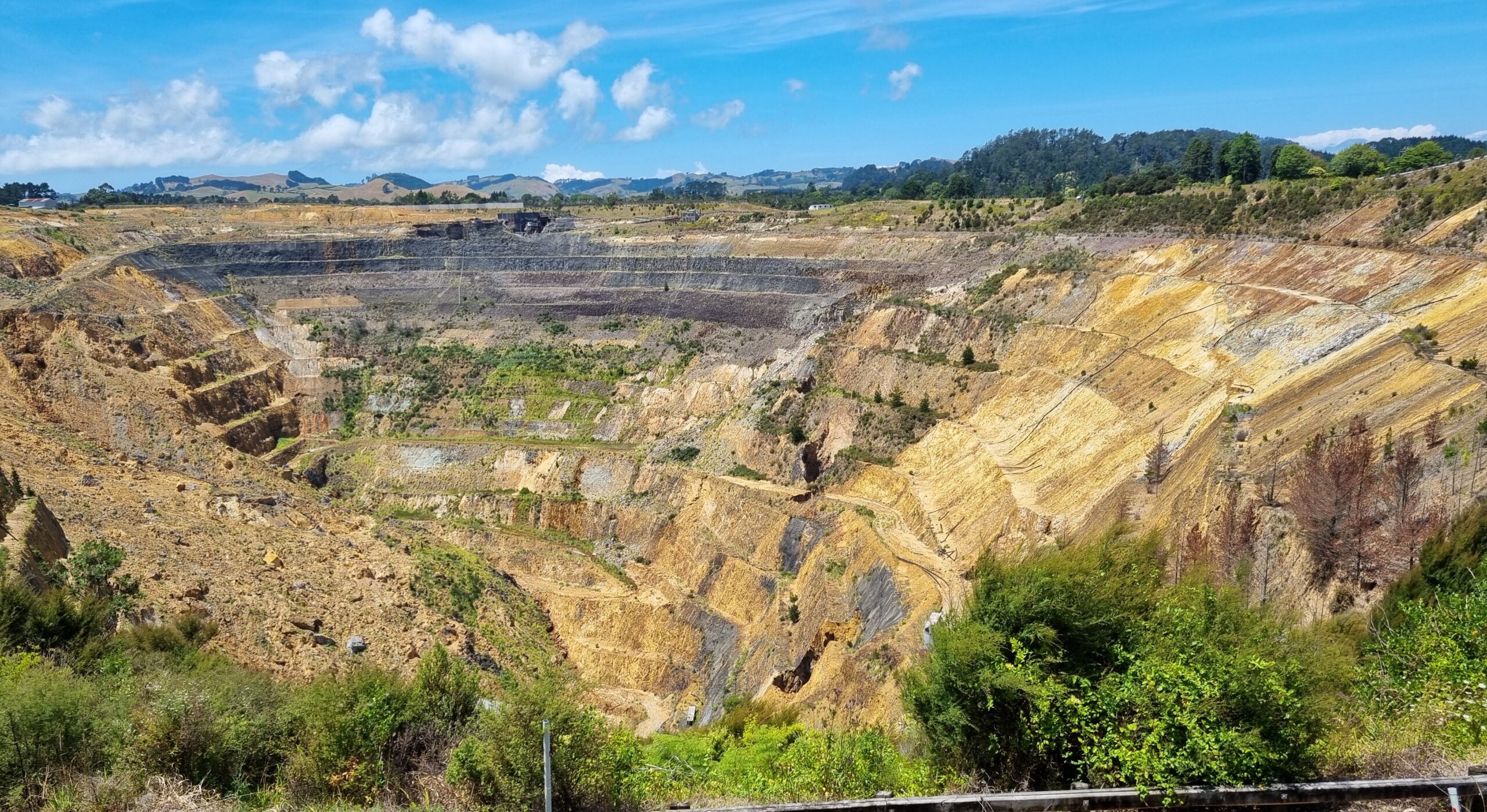 Nicht nur in Coromandel Town wurde Gold gefunden, sondern auch in Waihi. Seit 1778 wurde dort nach dem begehrten Metall gegraben. Bis zum Jahr 1952 wurden auf 16 verschiedenen Höhenstufen, welche rund 600 Meter unter den Boden führten, rund 175 Kilometer Tunnel gegraben, alles in Handarbeit mit dem Pickel als einzigem Werkzeug und Pferden, welche die Wagen mit dem Aushub nach oben brachten. Ganze Bergarbeiterdynastien waren über die Zeit daran beteiligt. Nach 1952 erfolgte der Abbau dann im Tagbau. Davon zeugt heute noch der riesige Pit, welcher seit rund 20 Jahren nun ebenfalls stillgelegt ist. Langsam erobert die Natur das riesige Loch zurück. Heute wird wieder in Tunnels gearbeitet, allerdings mit anderen Gerätschaften als noch im 19. und frühen 20. Jahrhundert.
