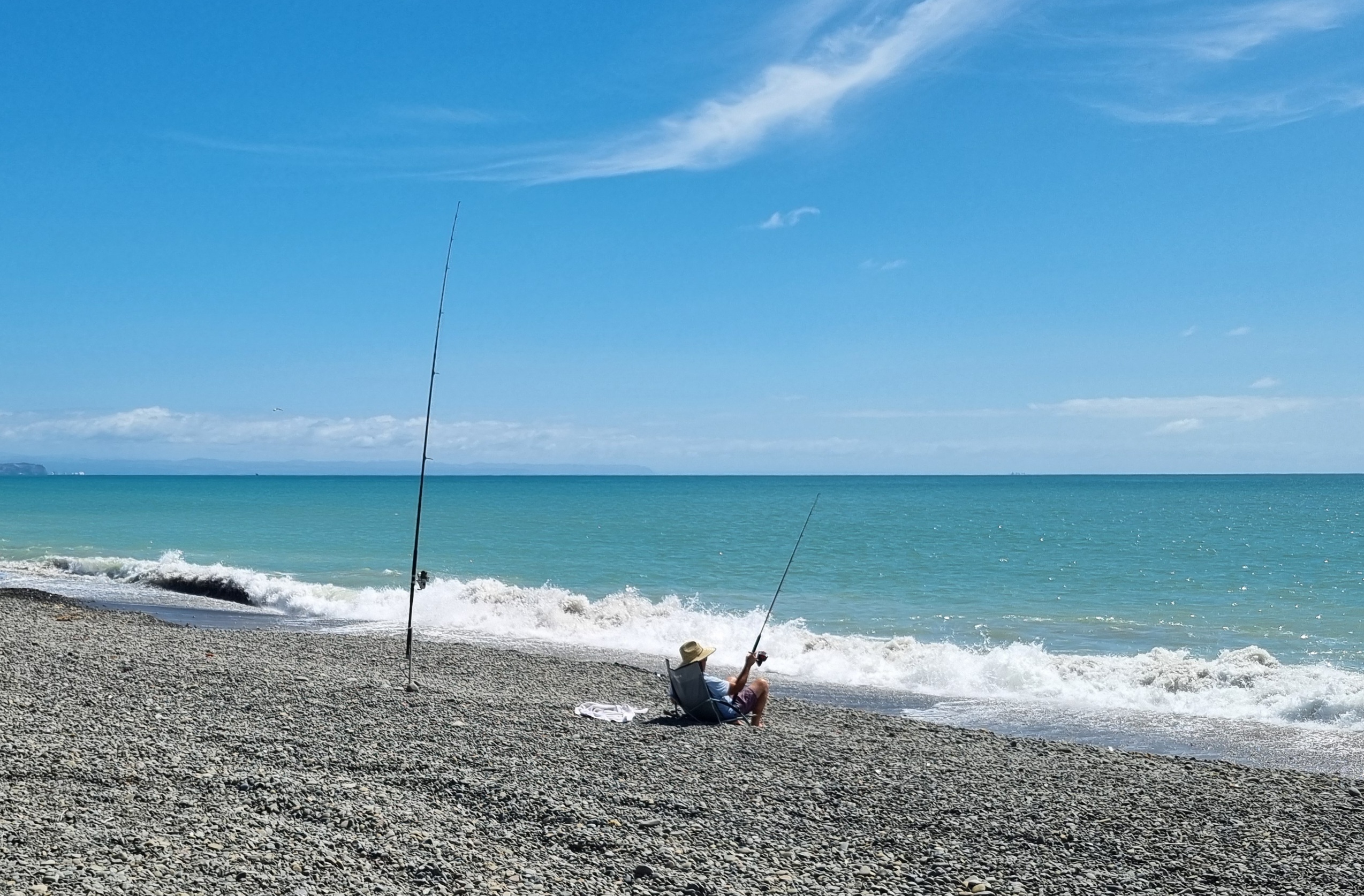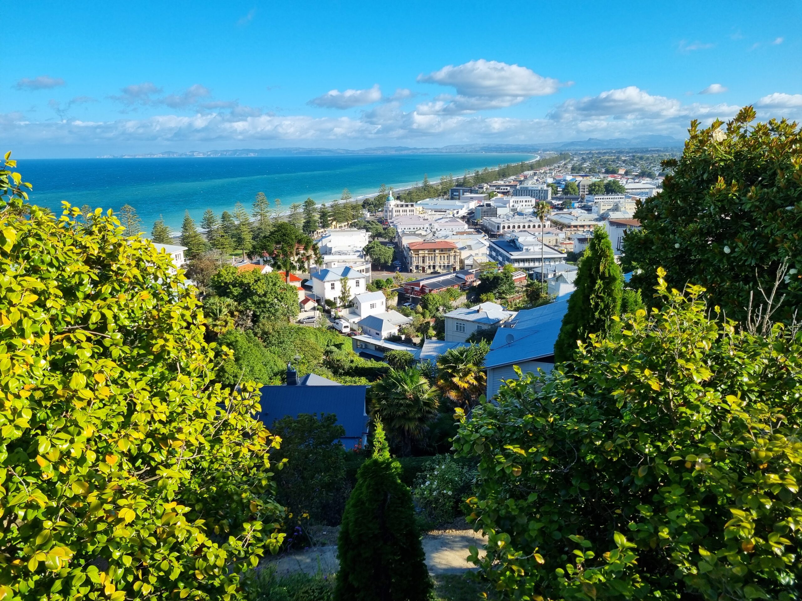 Der Grösse der Hawke’s Bay nach muss der Fischerhaken riesige Ausmasse gehabt haben. Im untenstehenden Bild lässt sich das erahnen. Das Photo zeigt einen Ausschitt der Bay, von Napier, im Süden der Bay gelegen, Richtung Norden.